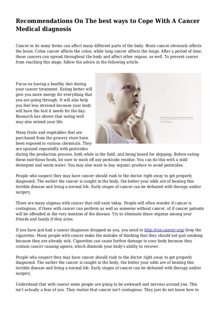 Planning cancer treatment can take time and you should talk to your doctor about how long you can expect to wait until treatment starts. The 8 best cancer insurance providers of 2021. Mammograms are the best way to find breast cancer early, when it is easier to treat. News & world report releases its annual list of the top 50 hospitals in the united states. But there's reason for hope. Cancer refers to any one of a large number of diseases characterized by the development of abnormal cells that divide uncontrollably and have the ability to infiltrate and destroy normal body tissue. But when ovarian cancer is found early, treatment works best. News best hospitals for cancer.these hospitals are recognized as the best in the industry for diagnosing and treating various forms of cancer in adults. Cancer is a group of diseases involving abnormal cell growth with the potential to invade or spread to other parts of the body. Which cancers are most survivable and why? Best value for the price: The hpv test looks for the virus (human papillomavirus) that can cause these cell changes. Checkpoint inhibitors are the most widely used type of immunotherapy drugs.